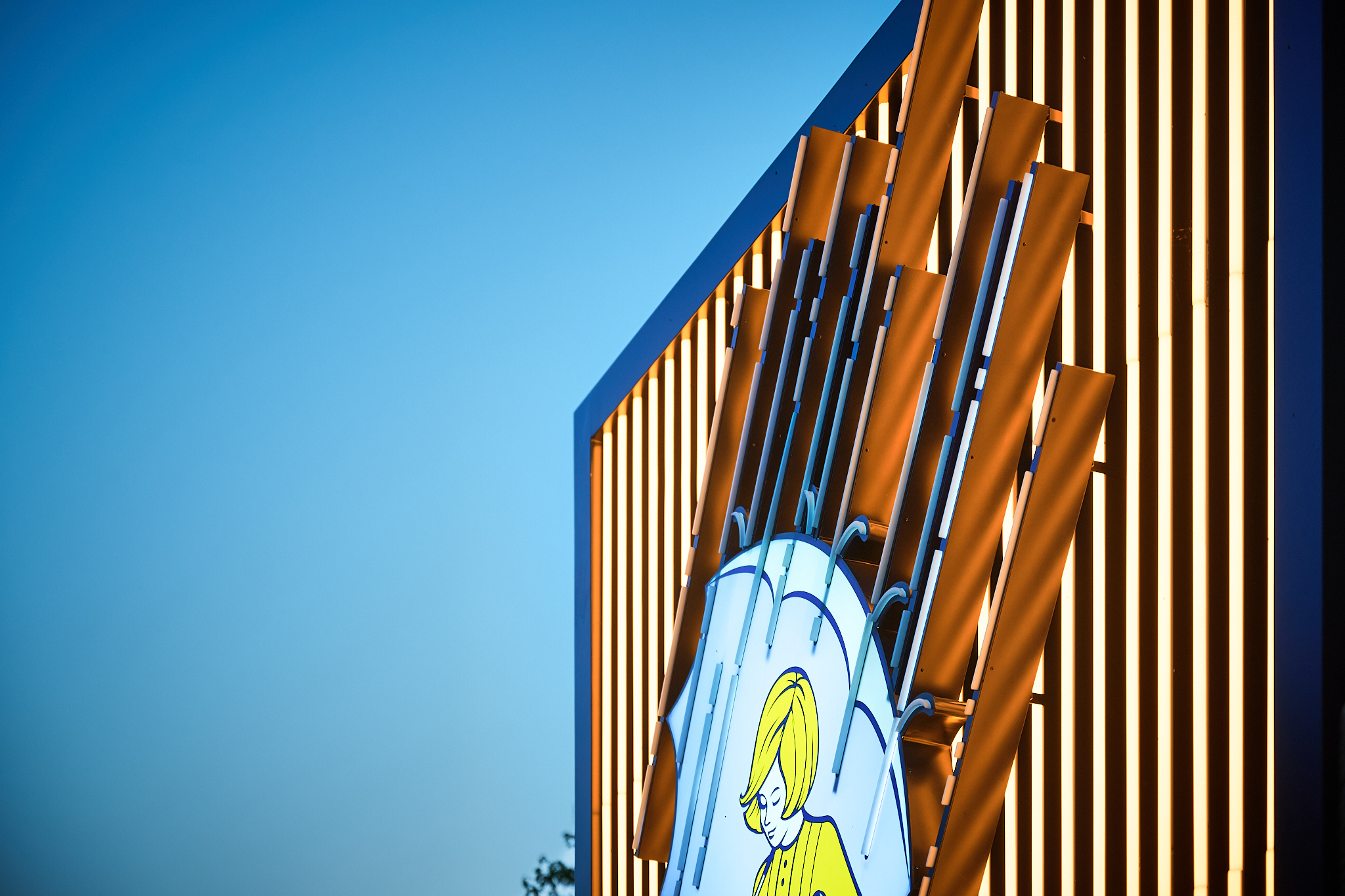 Challenge: Morton Salt needed a branded exterior monument sign that could create a distinctive nighttime moment, featuring the Morton Salt Girl with a “raining” effect, while also functioning as a durable, permanent site marker. The location had no existing sign so the project required a ground-up solution that included fabrication, sitework and installation.